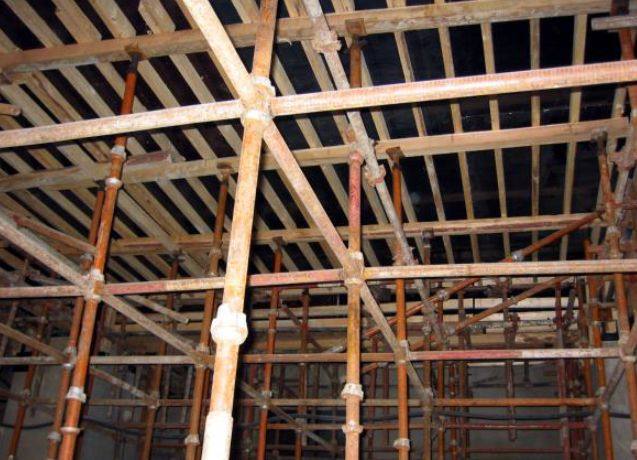 - 排架支撑展示:水平杆距板底间距合理,顶托高度合理排架间距合理