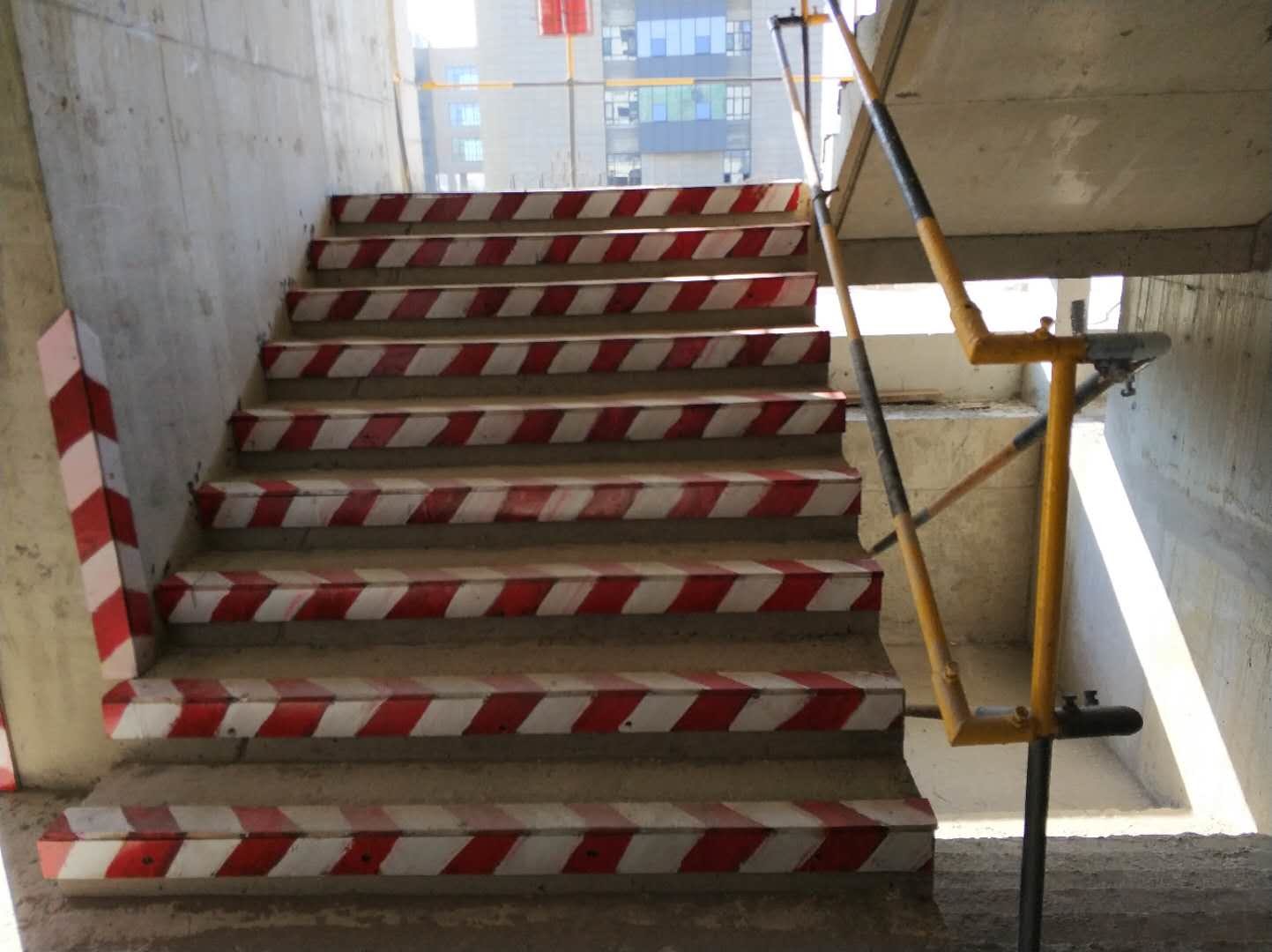 - 楼梯与柱砼阴阳角保护:按照要求对砼成品进行了有效的防护,没有出现碰坏破损现象。