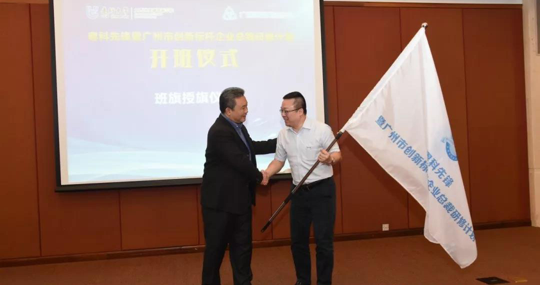 - 创显科教董事长张瑜接受2019粤科先锋暨广州市创新标杆企业总裁研修班班旗
