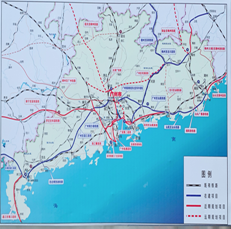 - 广湛高铁正线自广州站引出,向西经佛山、肇庆、云浮、阳江、茂名、湛江,终至湛江北站,投资估算998亿元,新建双线400公里,设计行车速度350公里/小时,项目建成工期5年。广湛高铁建成后,湛江至广州将从现在的三个多小时压缩至两小时以内,沿线城市将加快融入国家铁路网,使粤港澳大湾区、北部湾城市群、海南自贸区三大国家战略成功对接,将极大推动粤西地区经济社会实现快速发展,对于湛江加快建设省域副中心城市、打造现代化沿海经济带重要发展极具有重大意义。