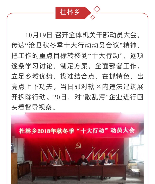 沧县杜林回族乡2018年全面实施“十大行动”纪实