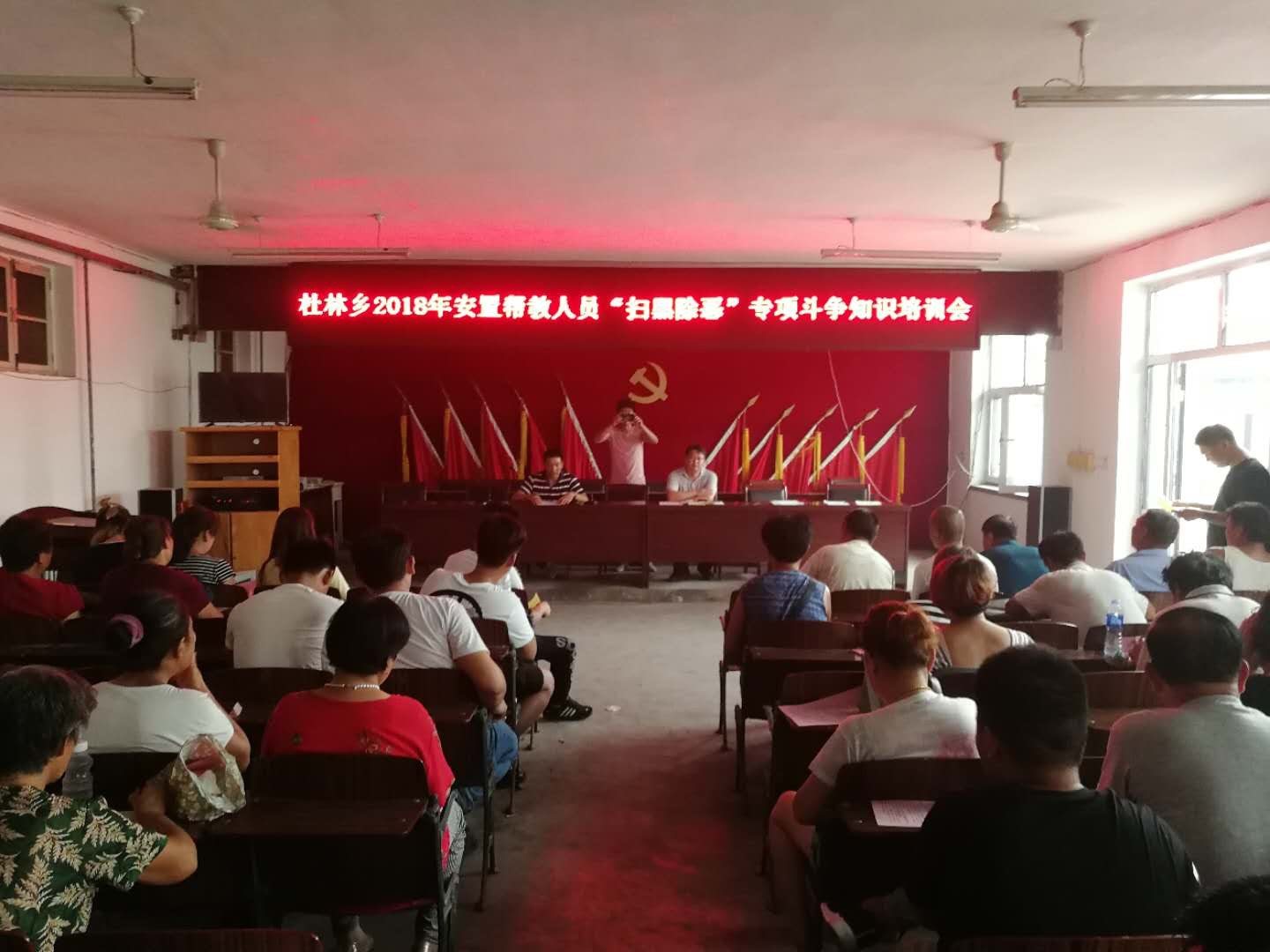 - (二)开展“扫黑除恶”专项斗争。二是大力宣传、全面动员,张贴公告200余张;发放法律书籍近1000册,“扫黑除恶”专项斗争明白纸3200余份,知识读本500余册;悬挂宣传标语140余条,粉刷标语320条;投资3万元制定电子宣传屏;农村大喇叭广播做到每日宣传。