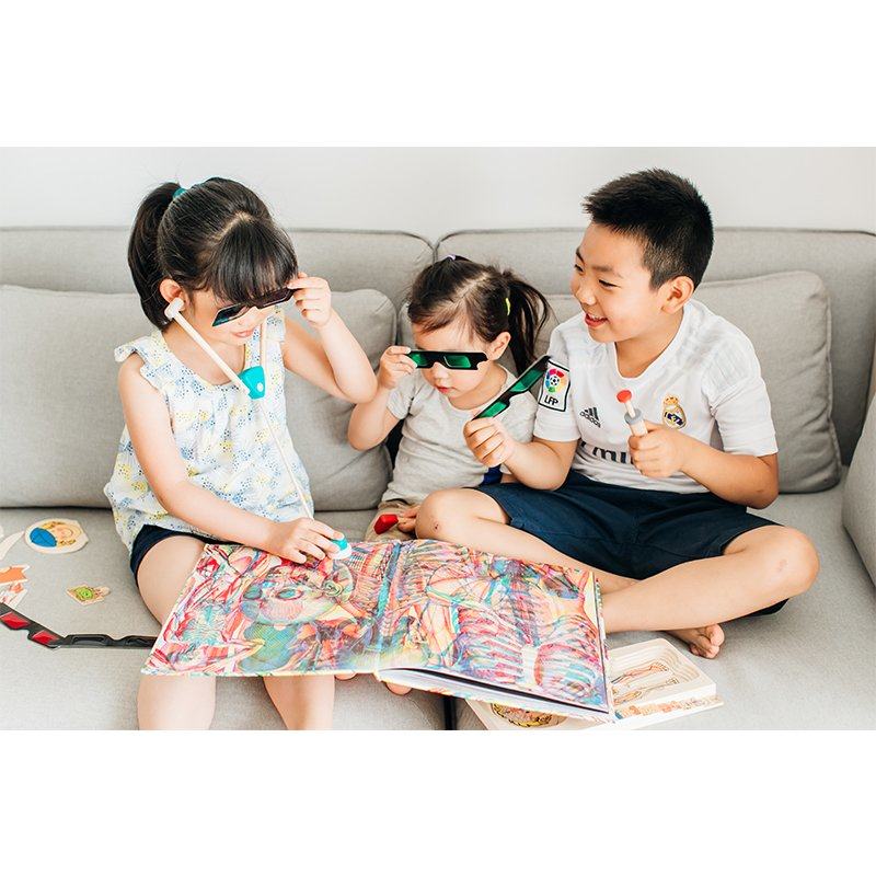 - 小希姐姐带领现场的小朋友一起分享《点亮自然》和《探秘人体》两本三色滤镜魔法书,让小朋友更清晰的感受大自然的神奇和人体的奥秘之处!