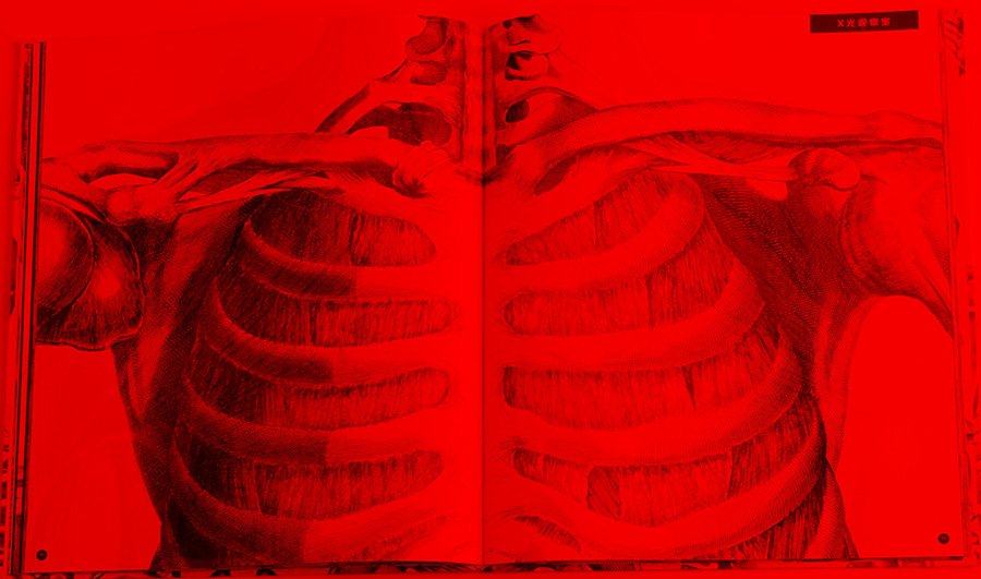 - 透过红色滤镜,可以观察结实的骨骼