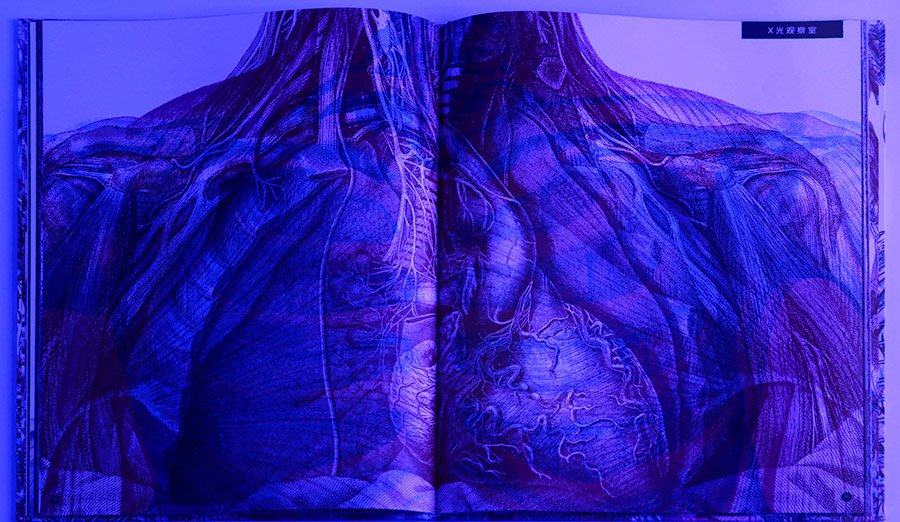 - 透过蓝色滤镜,可以观察维系生命的各种器官和血液循环。