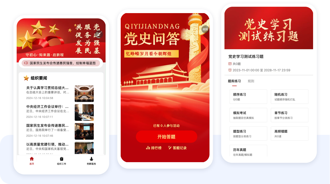党建资料学习研读,党史知识答题,考核结果统计
