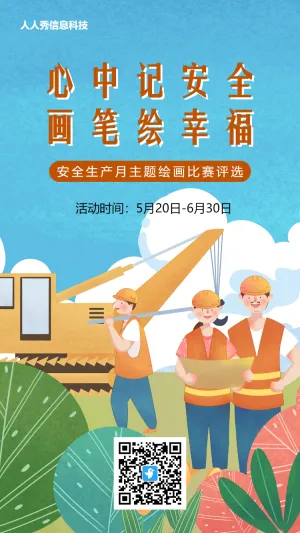 工程插画风格安全生产月投票活动海报